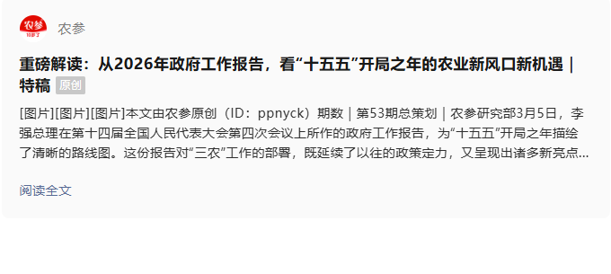重磅解读:从2026年政府工作报告,看“十五五”开局之年的农业新风口新机遇|特稿